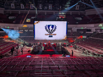 この言葉に合わせて照明が暗転し、スモークとレーザー光、ライトや音響を使った演出が始まった。ガンダムファンにはお馴染みの音楽と、永井一郎氏によるあのオープニング・ナレーションに続いて、GACKT氏による都市生活と環境との調和を訴えるコンセプトメッセージが読み上げられた。